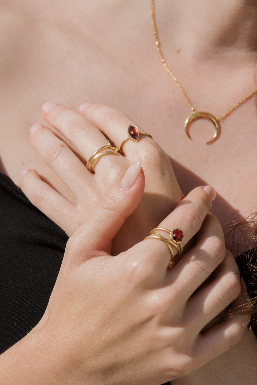 Son anillos y collares chatón finos, pensados para quienes disfrutan de la discreción y de los detalles que no necesitan gritar para hacerse notar. Me gusta trabajar con estas piedras porque, aunque sean pequeñas, tienen una luz propia que transforma la joya y la hace única.