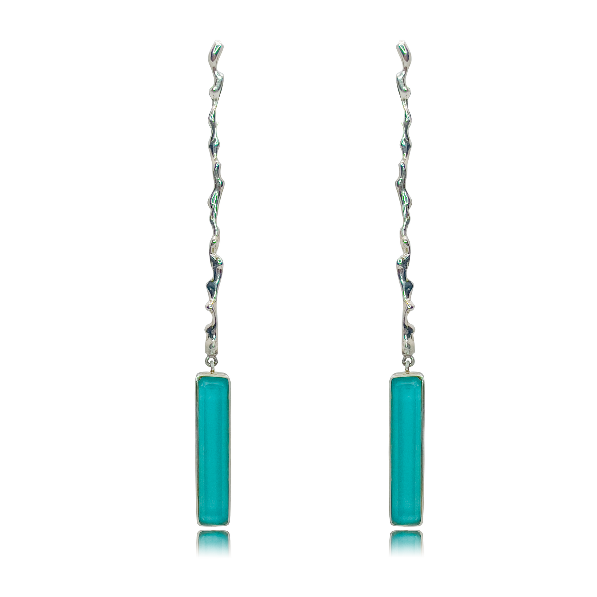 Pendiente de plata de ley 925 en forma de ramita y piedra turquesa rectangular con cuarzo.