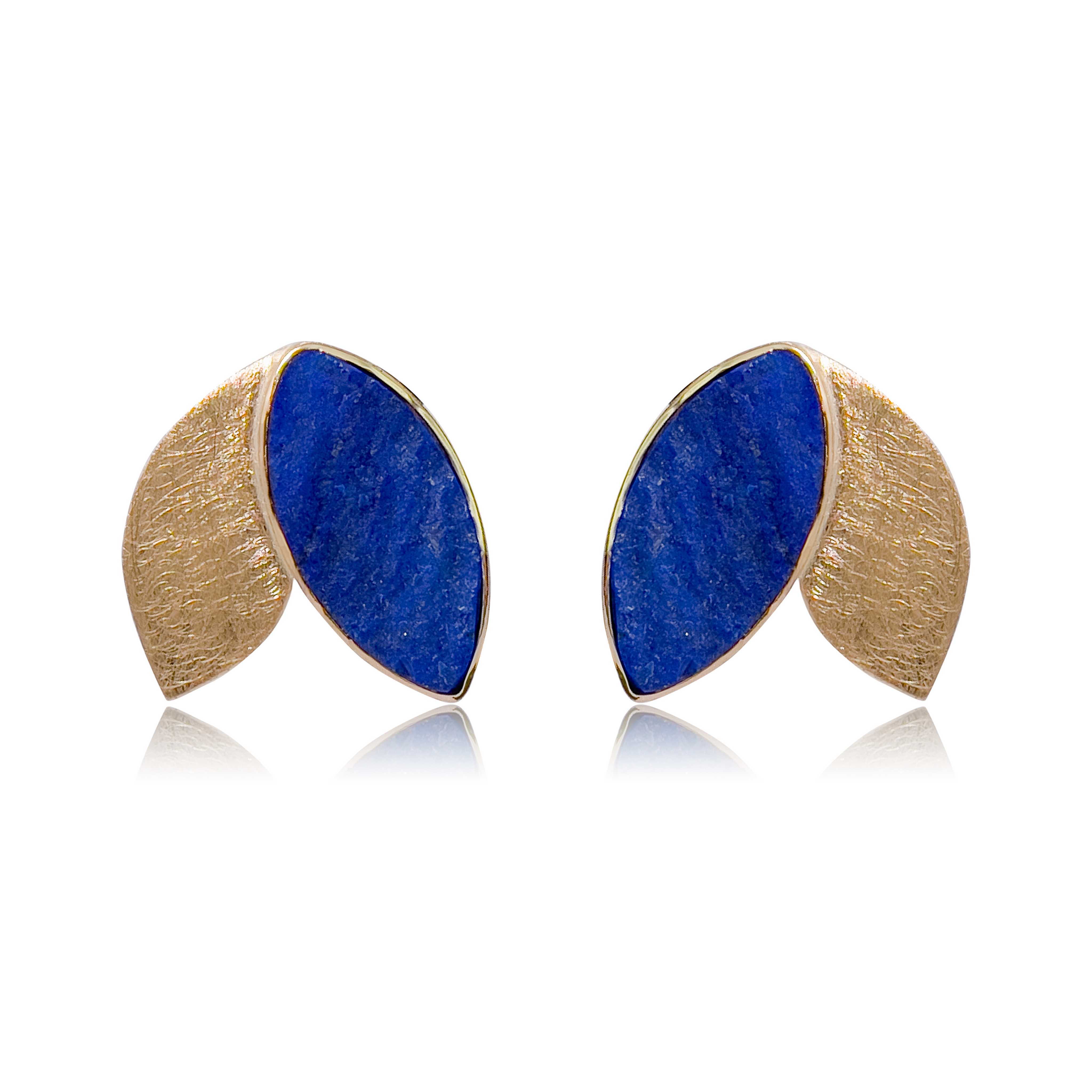 Pendientes de oro de 18kt, engastado con lapislázuli haciendo forma de dos pétalos.