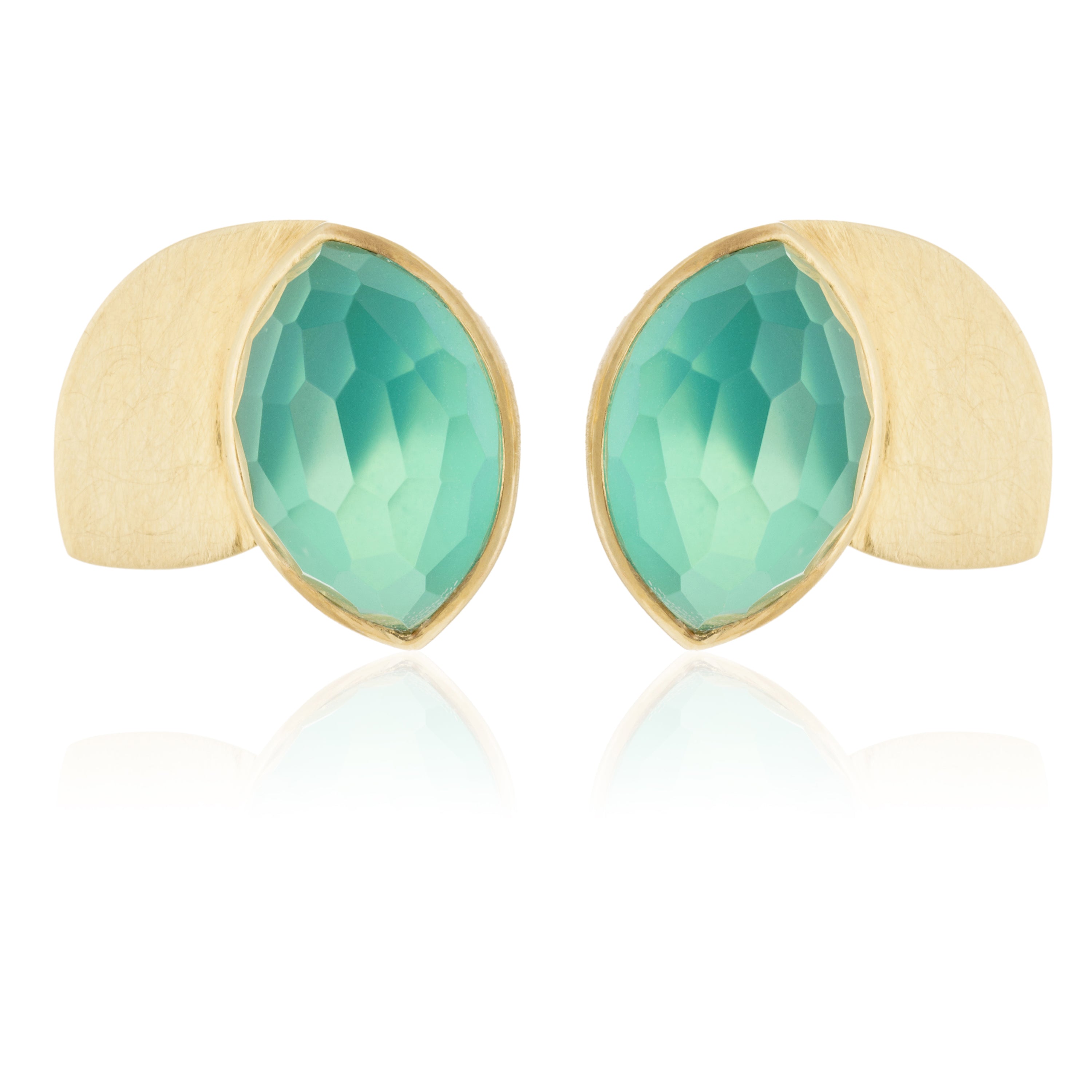 Pendientes de plata de primera ley(925) bañada en oro, engastado con triplete con cuarzo haciendo forma de dos pétalos.