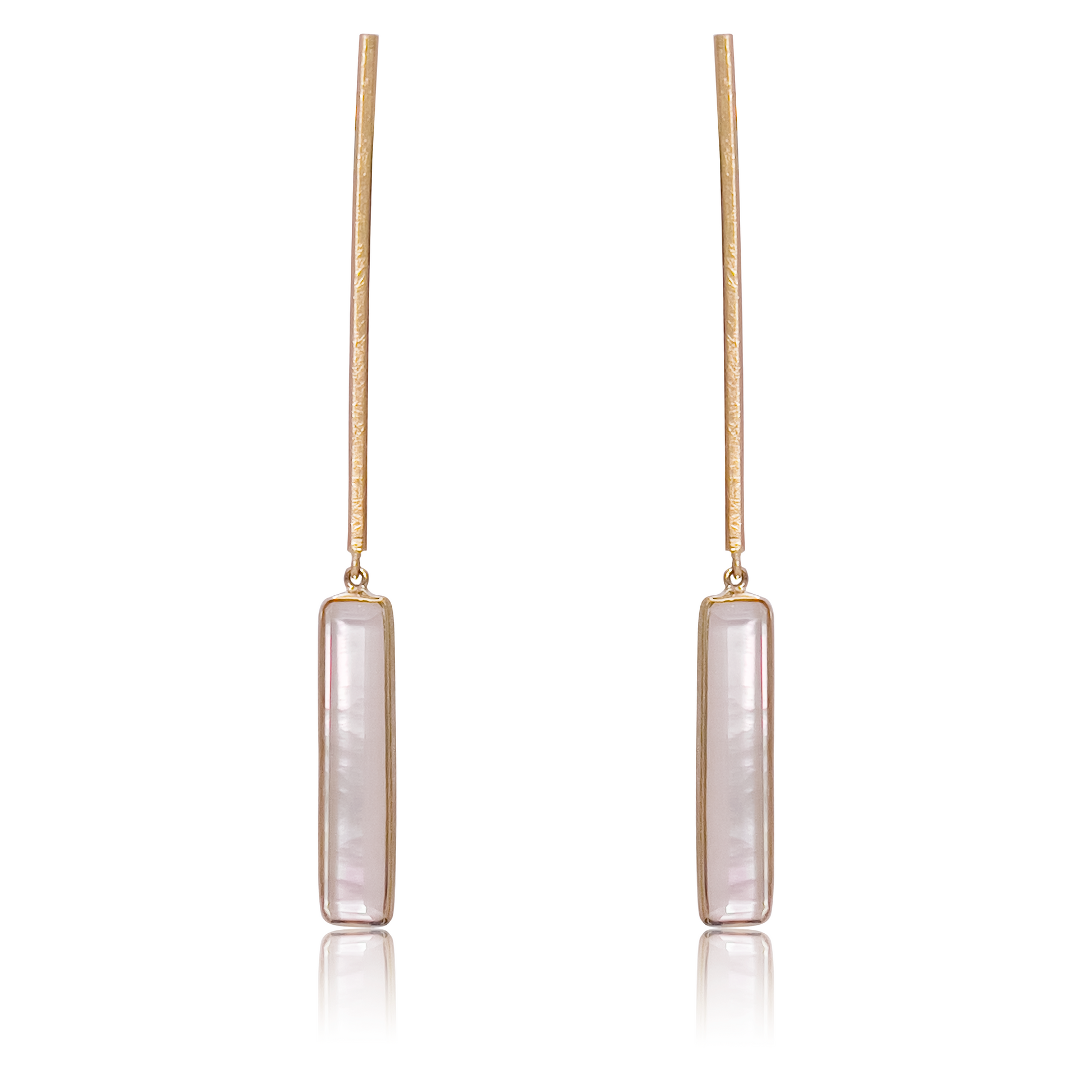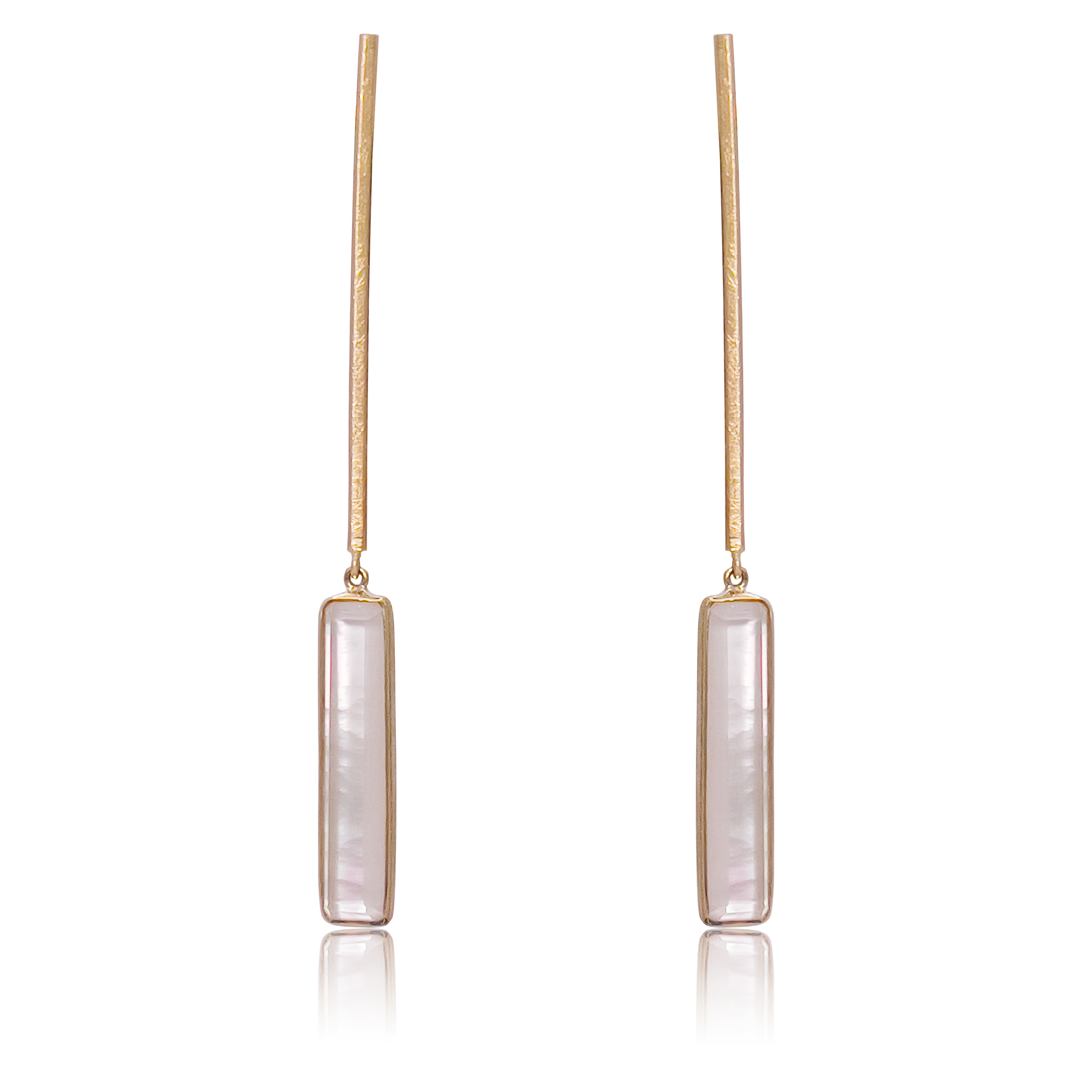 "Makila" significa palo en euskera y de aqui nace este pendiente de oro amarillo de 18kt en forma de barrita y piedra nácar rectangular con cuarzo.